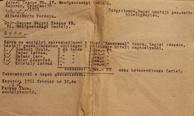Tszcs tagok háztáji gazdasági szükséglet hiteligénylés.
