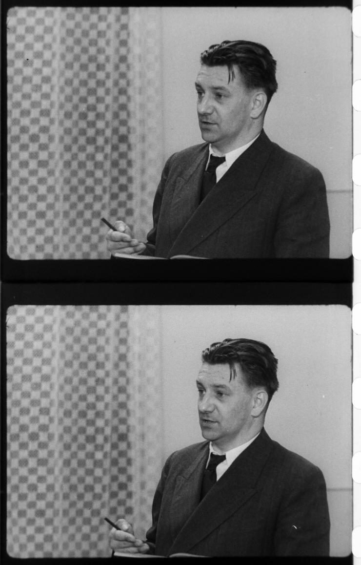 Narrátor: A lefolytatott bűnperben fény derült arra, hogy a zárt csoport részére Nagy Imre írásban egy államellenes platformot állított össze. Ezt bűntársai útján illegálisan terjesztette, sőt külföldre is kijuttatta.”