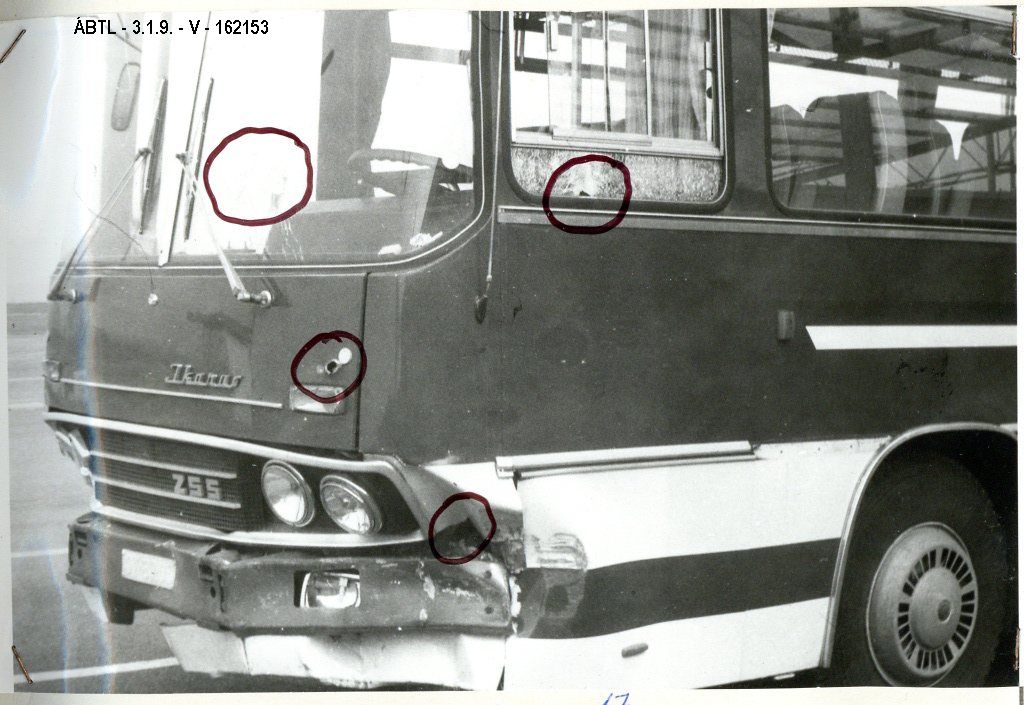 [40] Uo. (227. o.) Varga Györgynek, a Külügyminisztérium Titkársága vezetőjének átirata Wéber Gyulának. Budapest, 1980. május 19. Itt jegyezzük meg, hogy az Ikarus székesfehérvári gyáregységében addigra meg is javították a buszt, felújították a karosszéria sérült részeit, s kicserélték a szélvédőjét.