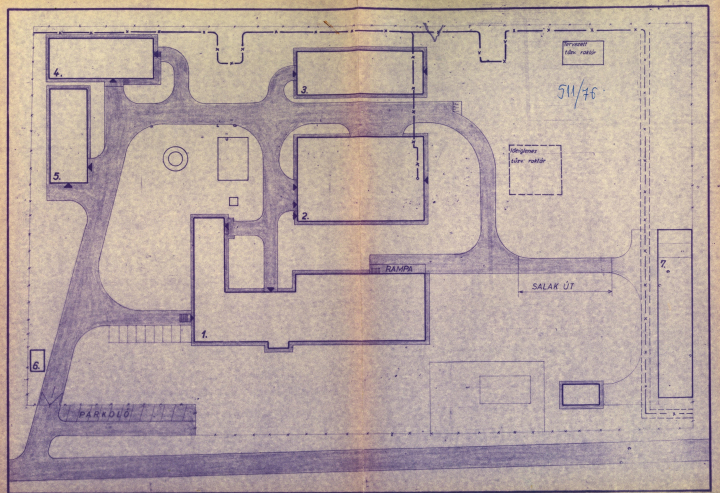 A gyár építése során megmarad ill[etve]. felújításra kerül az 1. 4. és 5. jelű épület. A gyár többi épülete új épület.