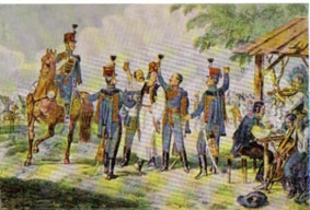 Verbunkos-jelenet – 19. század eleje, | Toborzás – színezett litográfia |
