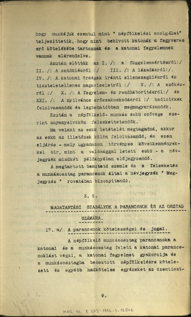 9. Körlevél a katonai hatóságok magatartásáról a hadiüzemekben sztrájk esetén