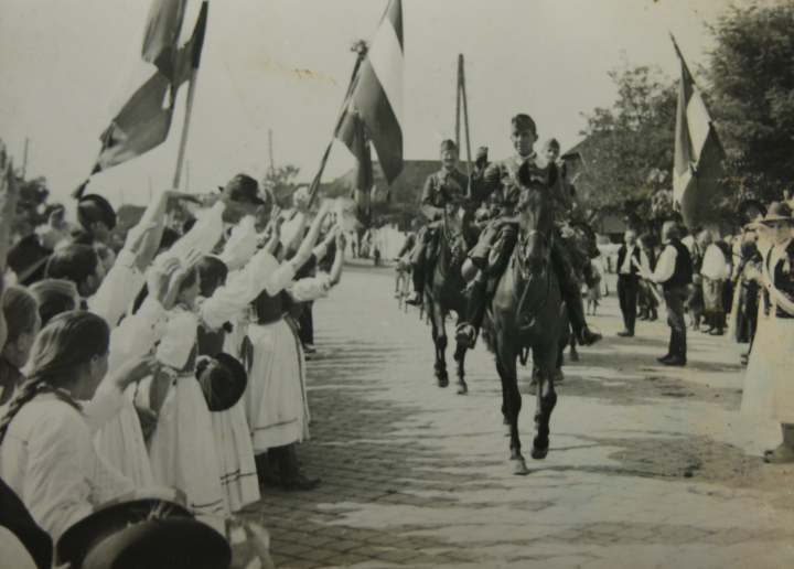 A 17/II. zászlóalj bevonulása az észak-erdélyi Gyalura, 1940. szeptember 11-én. Elöl vitéz Párdy Zoltán alezredes, zászlóaljparancsnok, mögötte balról Tuba László zászlós, zászlóalj segédtiszt, jobbról Berekai Sándor zászlóaljkürtös