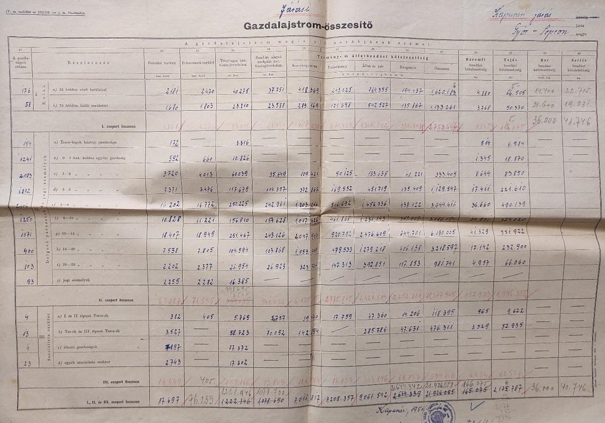 [55] HU-MNL-OL-XXVII-K-3. (18. doboz). Termelőszövetkezeti Tanács Titkársága, szigorúan titkos sz. kimutatás a termelőszövetkezetek fontosabb adatairól, a KSH 1954. XII. 31-i adatai alapján, 1955. május 18.